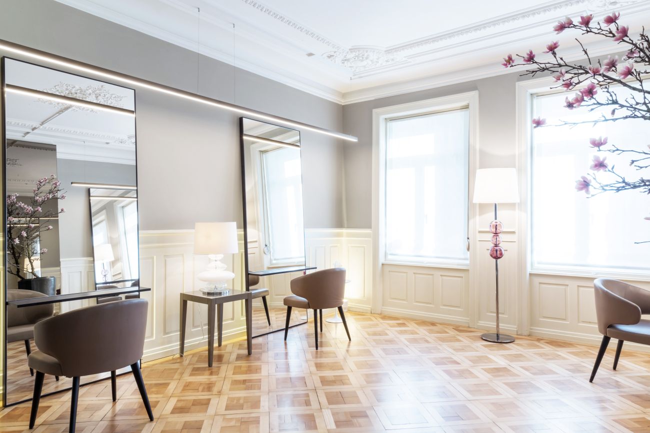 der hair salon von MURAT TOKAY im kreis 2 in zürich, an der seestrasse 69, befindet sich in einem liberty-style haus der 1930-jahren. im mittelpunkt der inneneinrichtung von pure.living stehen die spiegel, welche mit den ASTON-sesseln von MINOTTI das ambiente vervollständigen. bei der Einrichtung wurde mit viel liebe zum detail und mit einem grossen akzent auf farben und licht gearbeitet. hier fühlt sich der kunde rundum wohl.